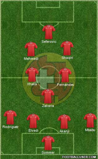 Sommer · Rodriguez · Akanji · Schar · Benito · Freuler · Zakaria · Xhaka · Shaqiri · Embolo · Seferovic