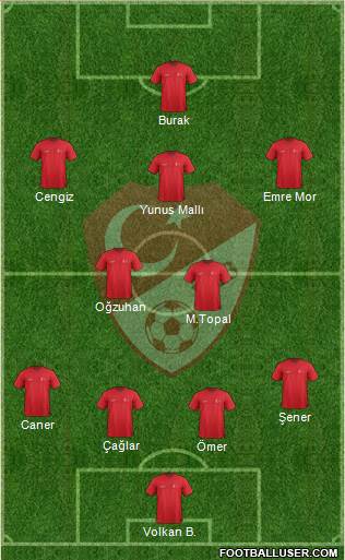 Volkan Babacan · Okay Yokuslu · Caglar Soyuncu · Omer Toprak · Suat Serdar · Ozil · Calhanoglu · Demirbay · Oztunali · Cengiz Under · Cenk Tosun
