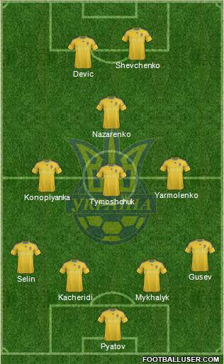 Pyatov · Kacheridi · Mykhalyk · Selin · Gusev · Tymoshchuk · Konoplyanka · Yarmolenko · Nazarenko · Voronin · Shevchenko