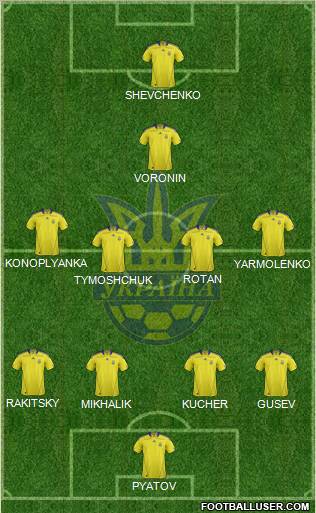 Pyatov · Rakitskiy · Kucher · Butko · Selin · Tymoshchuk · Rotan · Yarmolenko · Konoplyanka · Milevskiy · Shevchenko