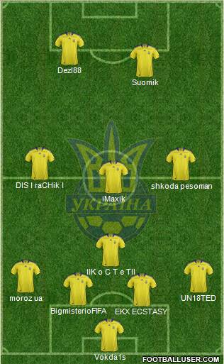 Shovkovsky · Kucher · Chygrynskiy · Rakitsky · Gusev · Tymoshchuk · Yarmolenko · Konoplyanka · Aliev · Milevsky · Devic