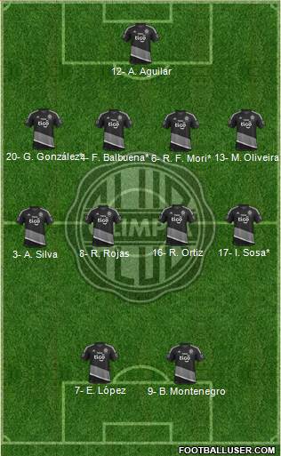 9- B. Montenegro · 7- E. López · 3- A. Silva · 8- R. Rojas · 16- R. Ortiz · 17- I. Sosa* · 6- R. F. Mori* · 4- F. Balbuena* · 13- M. Oliveira · 20- G. González* · 12- A. Aguilar