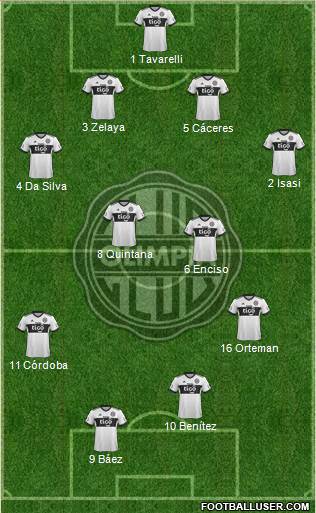 1 Tavarelli · 3 Zelaya · 5 Cáceres · 2 Isasi · 4 Da Silva · 8 Quintana · 6 Enciso · 16 Orteman · 11 Córdoba · 10 Benítez · 9 Báez