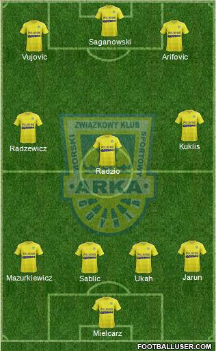Mielcarz · Sablic · Ukah · Mazurkiewicz · Jarun · Radzio · Radzewicz · Kuklis · Vujovic · Arifovic · Saganowski