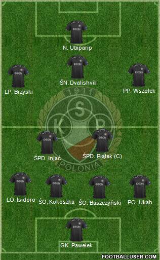 GK. Pawełek · ŚO. Baszczyński · PO. Ukah · ŚO. Kokoszka · LO. Isidoro · ŚPD. Injać · ŚPD. Piątek (C) · LP. Brzyski · PP. Wszołek · ŚN. Dvalishvili · N. Ubiparip