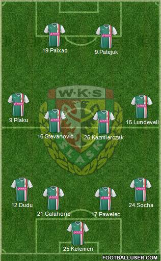 25.Kelemen · 17.Pawelec · 3.Kokoszka · 4.Hateley · 12.Dudu · 26.Kazmierczak · 16.Stevanović · 10.Vinicius · 28.Paixao · 9.Plaku · 19.Paixao