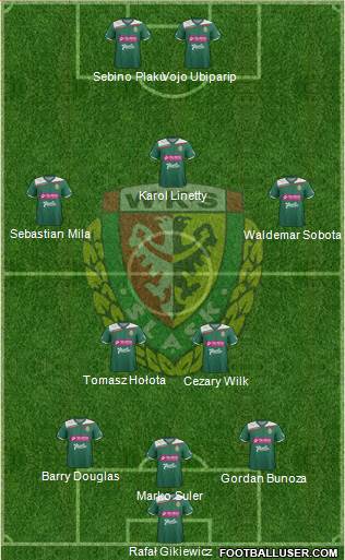 33 R. Gikiewicz · 3 A. Kokoszka · 17 M. Pawelec · 12 Dudu Paraíba · 2 K. Ostrowski · 26 P. Kaźmierczak · 16 D. Stevanovič · 7 S. Plaku · 5 W. Sobota · 11 S. Mila (c) · 19 M. Paixão
