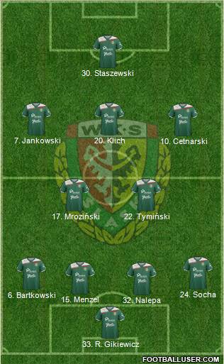 Kelemen (R.Gikiewicz) · Fojut (Menzel) · Celeban (Nalepa) · Wasiluk (Bartkowski) · Kowalczyk (Socha) · Kaźmierczak (Mroziński) · Cetnarski (Tymiński) · Mila (Klich) · Sobota (Madej) · Jankowski (Patejuk) · Teodorczyk (Gikiewicz)