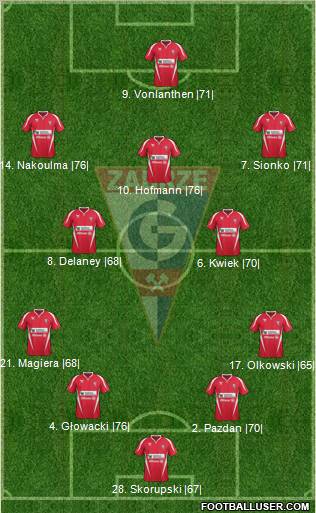 28. Skorupski |67| · 2. Pazdan |70| · 4. Głowacki |76| · 17. Olkowski |65| · 21. Magiera |68| · 6. Kwiek |70| · 8. Delaney |68| · 10. Hofmann |76| · 14. Nakoulma |76| · 7. Sionko |71| · 9. Vonlanthen |71|