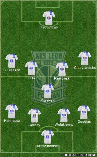 Gostomski · Arboleda · Douglas · Możdżeń · Henriquez · Trałka · Linetty · Pawłowski · Lovrencsics · Hamalainen · Teodorczyk