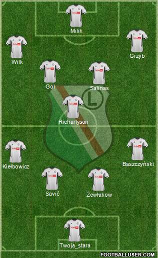 1.Kazimierczak · 6.Żewłakow · 15.Astiz · 14.Wawrzyniak · 25.Rzeźniczak · 5.Gol · 21.Vrdoljak · 27.Wolski · 7.Traore · 18.Kucharczyk · 28.Ljuboja