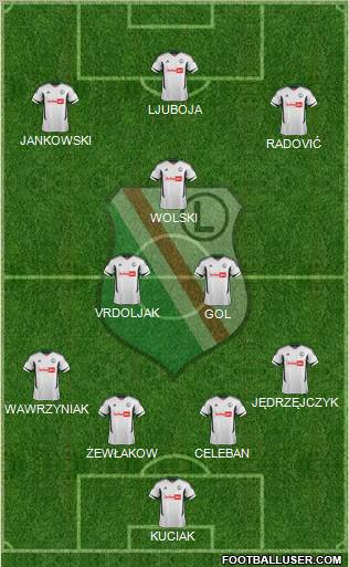 12.Kuciak · 15.Astiz · 4.Gardos · 25.Rzeźniczak · 14.Wawrzyniak · 5.Gol · 31.Żyro · 21.Vrdoljak · 27.Wolski · 9.Novo · 28.Ljuboja
