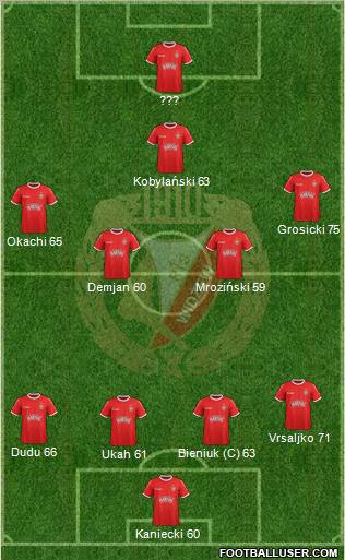 Iliev 65 · Ukah 61 · Bieniuk (C) 63 · Dudu 65 · Vrsjako 68 · Panka 62 · Mroziński 58 · Okachi 63 · Grosicki 73 · Zigajevs 60 · Grzelczak 60