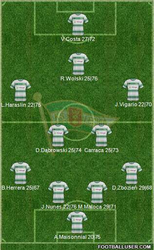 Kuciak (Zelenika) · Augustyn · Joao Nunes (S.Vitoria) · Wawrzyniak · Stolarski (Wojtkowiak) · Matras (Lukasik) · Krasic · Wolski (J.Oliveira) · Peszko (Haraslin) · F.Paixao (R.Baldè) · M.Paixao (Kuswik)