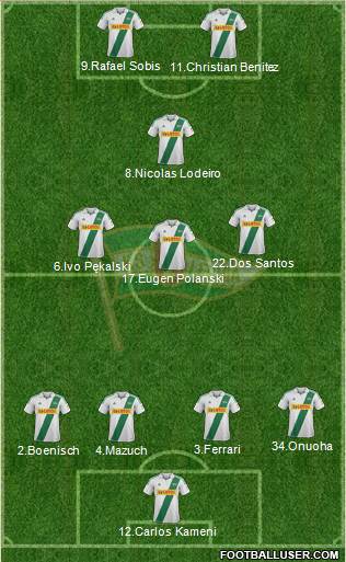 12.Carlos Kameni · 34.Onuoha · 2.Boenisch · 3.Ferrari · 4.Mazuch · 17.Eugen Polanski · 22.Dos Santos · 6.Ivo Pękalski · 8.Nicolas Lodeiro · 7.Alan Borges · 11.Christian Benitez