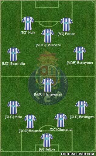 Helton (Beto) · Rolando (E Mangala) · N Otamendi (Maicon) · A Pereira (A Sandro) · J Fucile (C Sapunaru) · Fernando (Souza) · F Guarin (S Defour) · J Moutinho (F Belluschi) · Hulk (Djalma) · S Varela (C Rodriguez) · Walter (Kleber)