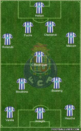 Helton · Otamendi · Rolando · Pereira · Fucile · Fernando · Bellushi · Moutinho · Varela · Hulk · Falcao