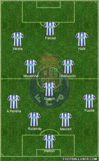 Helton · Fucile · Otamendi · Rolando · Sapunaru · João Moutinho · Belluschi · Guarín · Varela · Falcao · Hulk