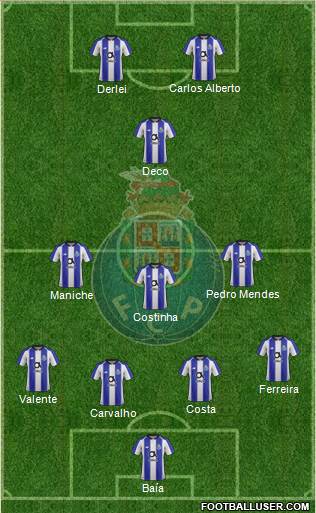 Baía · Carvalho · Costa · Valente · Ferreira · Costinha · Alenichev · Maniche · Deco · C.Alberto · Derlei
