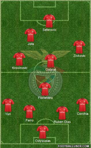 Vlachodimos · Ruben Dias · Ferro · Grimaldo · Andre Almeida · Gabriel · Weigl · Rafa Silva · Pizzi · Carlos Vinicius · Cavani