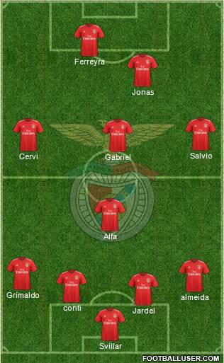 Vlachodimos · Ruben Dias · Jardel · Tomás Tavares · Cervi · Florentino · Gabriel · Chiquinho · Jota · Rafa · Seferovic