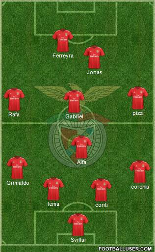 Vlachodimos · Ruben Dias · Ferro · Grimaldo · Andre Almeida · Weigl · Taarabt · Cervi · Rafa Silva · Pizzi · Carlos Vinicius