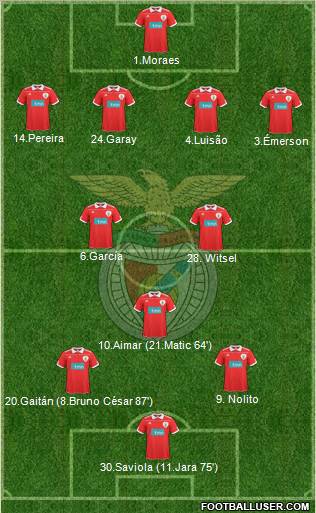 Artur · Garay · Luisão · Maxi · Emerson · Matic · Bruno Cesar · Aimar · Gaitan · Nolito · Cardozo