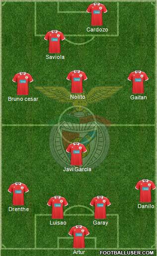 Artur · Luisão · Emerson · Garay · Maxi Pereira · Javí García · Witsel · Rúben Amorim · Nolito · Cardozo · Saviola