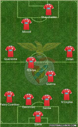 Roberto · Jardel · Luisao · Coentrao · Pereira · Javi Garcia · Gaitan · Aimar · Martins · Cardozo · Saviola