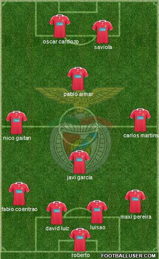 Palop · Pepe · D.Luiz · Pereira · Cissokho · Javi Garcia · Alan · Coentrao · Aimar · Suarez · Cardozo