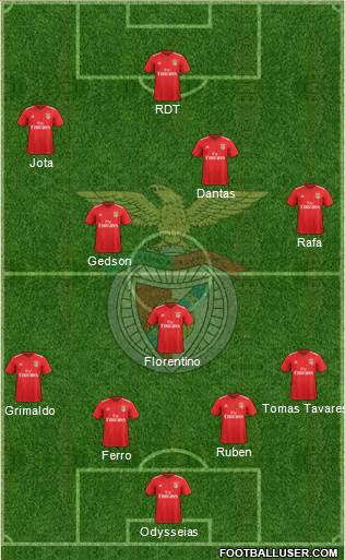 Helton/Ody/Svilar · Ota/T. Araújo · Vertonghen/Morato · Veríssimo/A. Almeida · Gri/Gil/Dalbert* · Vidal*/D. Gonçalves · Tino/Samaris/Musrati* · J.Mário/Taraabt/Gedson/P.Bernardo · Everton/Waldschmidt · Rafa/Pizzi · D. Costa/Darwin/Pinho/Ramos · Gabriel/Chiquinho/Gedson? · Gilberto/J.Ferreira/T.Tavares/Ferro · Jota/Sefe/Vini/