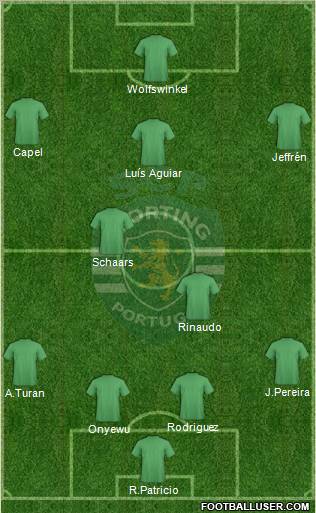 9 Ricky van Wolfswinkel · 17 Jeffrén · 11 Diego Capel · 8 Stijn Schaars · 26 André Santos · 21 Fito Rinaudo · 47 João Pereira · 89 Atila Turan · 5 Oguchi Onyewu · 2 Alberto Rodríguez · 1 Rui Patrício