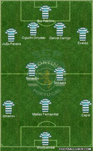 Rui Patrício · Onyewu · Carriço · Evaldo · João Pereira · Rinaudo · Schaars · Matías Fernandez · Izmailov · Diego Capel · Van Wolfswinkel