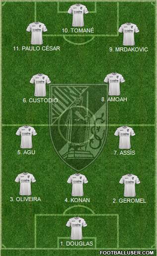 1. DOUGLAS · 2. GEROMEL · 4. KONAN · 3. OLIVEIRA · 7. ASSÍS · 5. AGU · 6. CUSTODIO · 8. AMOAH · 9. MRDAKOVIC · 11. PAULO CÉSAR · 10. TOMANÉ
