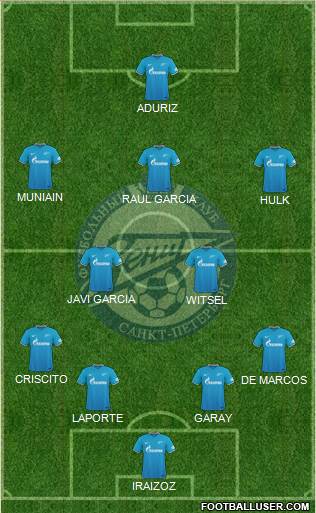 Lodygin · Garay · Neto · Anyukov · Criscito · Javi Garcia · Witsel · Hulk · Shatov · Danny · Dzyuba