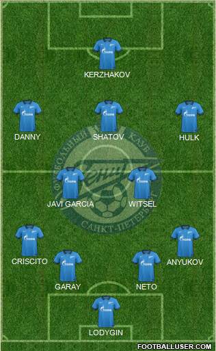 Lodygin · Garay · Neto · Smolnikov · Criscito · Fayzulin · Garcia · Hulk · Danny · Shatov · Kerzhakov