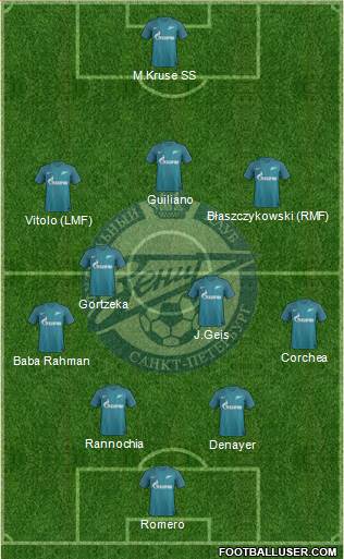 Lodygin · Neto · Ivanovic · Criscito · Smolnikov · L. Paredes · Noboa · Poloz · Giuliano · Kokorin · Dzyuba