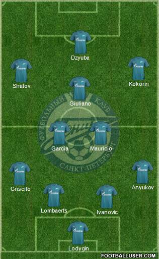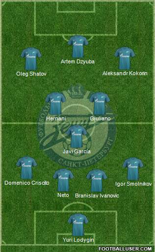 Yuri Lodygin · Domenico Criscito · Luis Neto · Branislav Ivanovic · Yuri Zhirkov · Hernani · Javi Garcia · Giuliano · Alexander Kokorin · Oleg Shatov · Artem Dzyuba