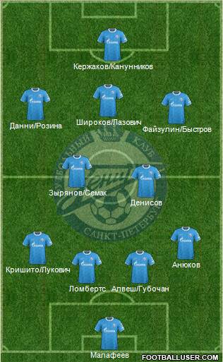 Malafeev · Lombaerts · Hubocan · Criscito · Anyukov · Denisov · Shirokov · Semak/Zyryanov · Faizulin · Danny · Kerzhakov