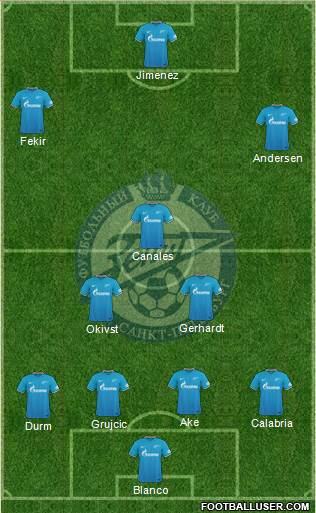 Lodygin · Lombaerts · Neto · Smolnikov · Criscito · Javi García · Witsel · Giuliano · Shatov · Dzyuba · Kokorin