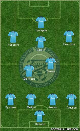 Malafeev · Lombaerts · Alves · Hubocan · Anyukov · Semak · Zyryanov · Shirokov · Danny · Lazovic · Kerzakhov
