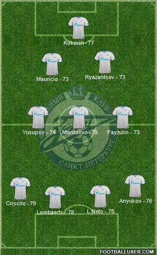 Dzyuba · Shatov · Hulk · Danny · Witsel · Maurício · Smolnikov · Zhirkov · Garay · Lombaerts · Lodygin