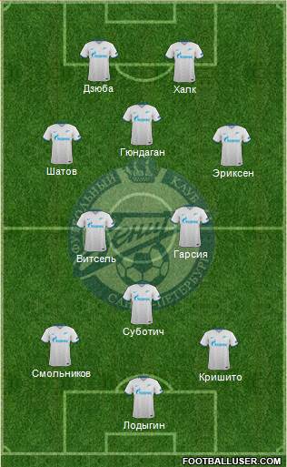 Lodygin · Lombaerts · Garay · Smolnikov · Anyukov · Witsel · Fayzulin · Danny · Shatov · Hulk · Dzyuba