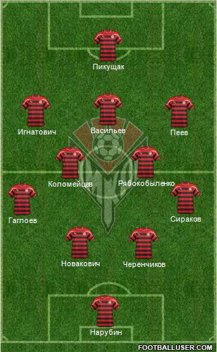 Нарубин · Черенчиков · Новакович · Гаглоев · Сираков · Коломейцев · Рябокобыленко · Пеев · Игнатович · Васильев · Пикущак