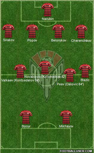 Narubin · Sirakov · Popov · Belorukov · Cherenchikov · Novakovic (Kolomeitsev 62') · Blazic · Valkaev (Kontsedalov 84') · Peev (Dalovic 84') · Bocur · Mikhayov