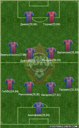 I. Akinfeev 83 · S. Ignashevich 77 · Dede 79 · G. Schennikov 73 · Mario Fernandes 74 · L. Diarra 80 · P. Wernbloom 74 · R. Elm 79 · A. Samedov 80 · Musa 74 · D. Bent 81