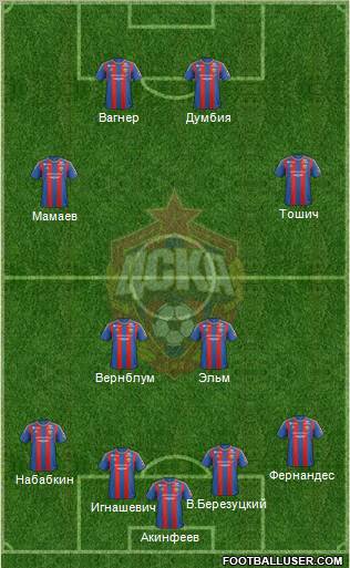 Akinfeev · V. Berezutskiy · A. Berezutskiy · Mario Fernandes · Ignashevich · Elm · Tosic · Mamaev · Doumbia · Dzagoev · Honda