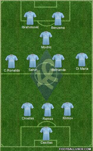 Ibrahimovic · Benzema · Modric · Di Maria · Sahin · Belhanda · C.Ronaldo · Klimov · Chiellini · Ramos · Casillas