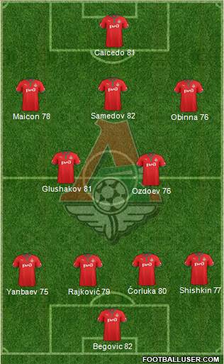 Begovic 82 · Yanbaev 75 · Rajković 79 · Ćorluka 80 · Shishkin 77 · Ozdoev 76 · Glushakov 81 · Obinna 76 · Maicon 78 · Samedov 82 · Caicedo 81