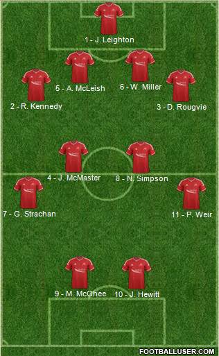 1 - J. Leighton · 6 - W. Miller · 5 - A. McLeish · 2 - R. Kennedy · 3 - D. Rougvie · 4 - J. McMaster · 8 - N. Simpson · 7 - G. Strachan · 11 - P. Weir · 9 - M. McGhee · 10 - J. Hewitt
